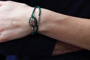 Caractéristiques : Fermeture coulissante. Il s’ouvre en tirant sur le collier même et se ferme en tirant sur chaque fil de côtés opposés. Bijou résistant et lavable (ne décolore pas). Fil de polyester de qualité contrôlée. Pierre purifiée avant utilisation.