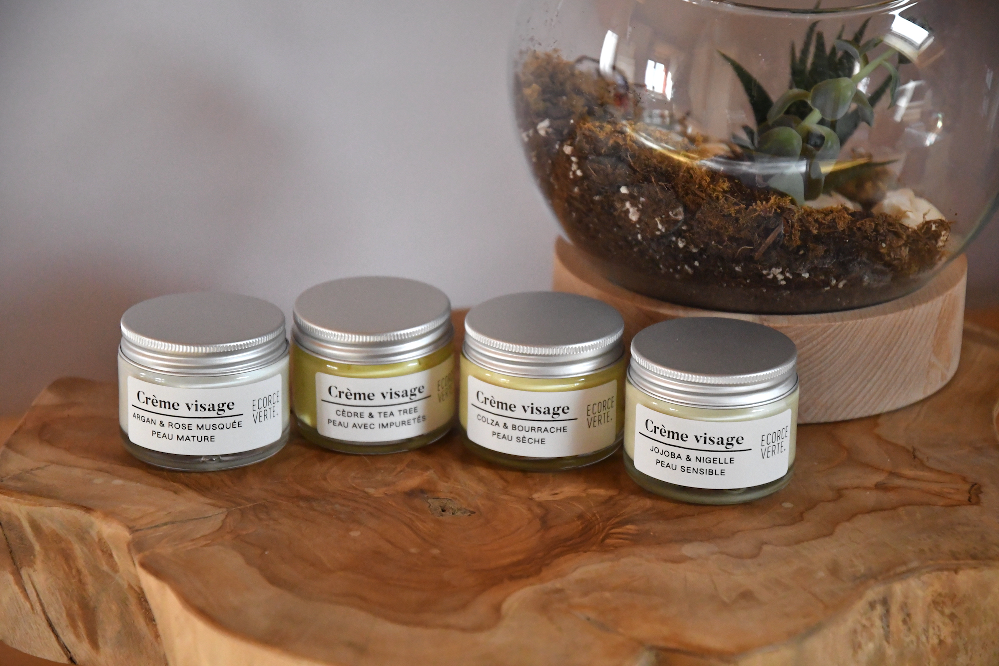 – Pour les peaux acnéiques : La crème Peau avec impuretés : hydratante et équilibrante, cette crème possède une synergie d’huiles essentielles afin d’aider à réguler le sébum sans dessécher la peau. Cette crème est donc bien adaptée aux peaux grasses, tendance acnéique. Déconseillée durant la grossesse.