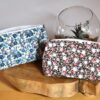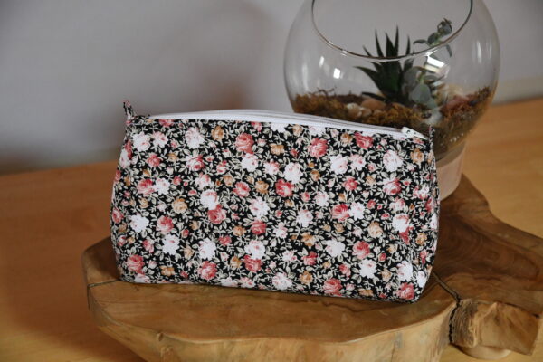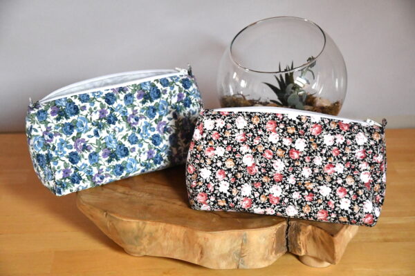 Deux tissus floraux disponibles. Taille de la trousse : 24cm de long et 14cm de haut.
