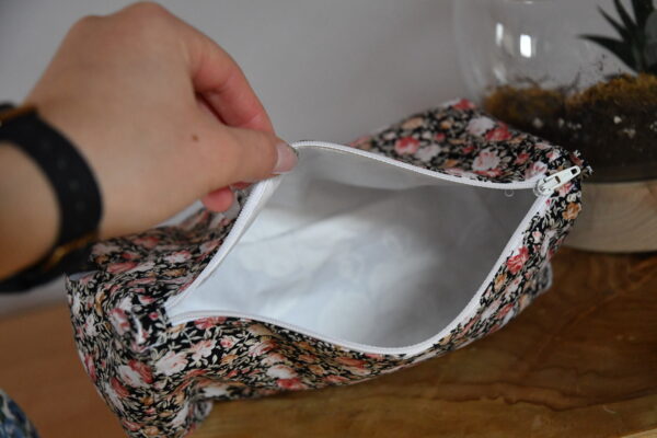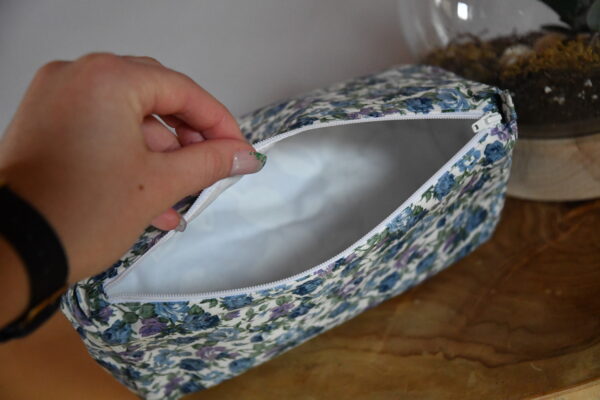 Trousse de toilette en tissu cousue à la main par Gabriela Etcetera.