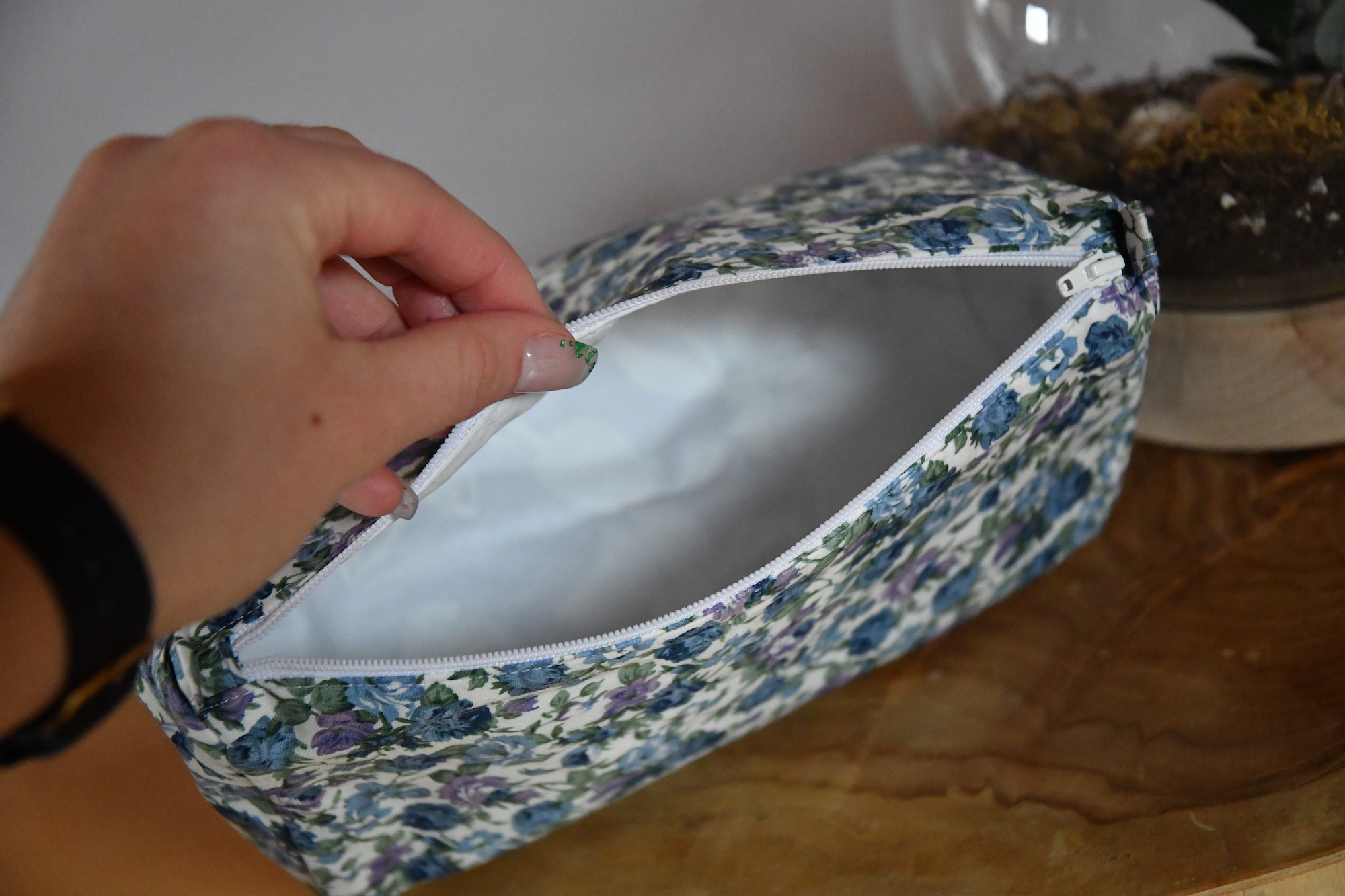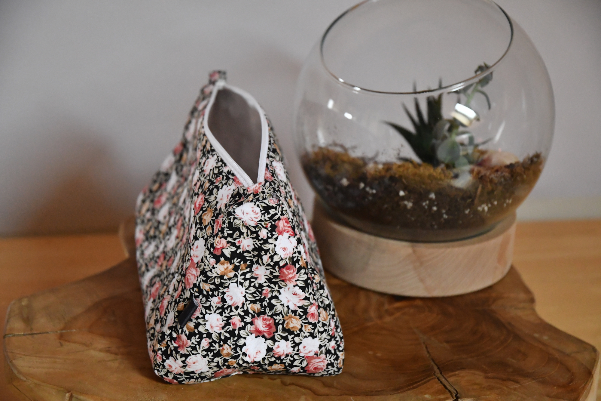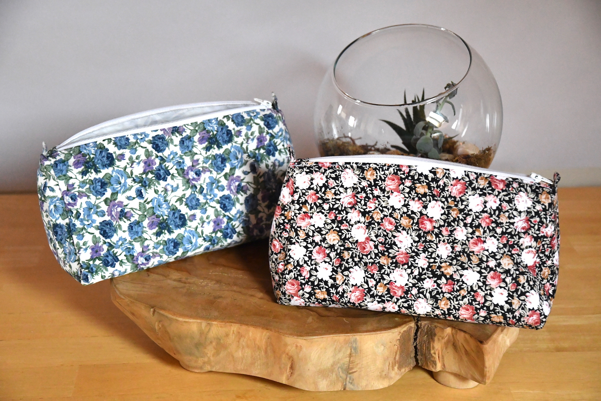Deux tissus floraux disponibles. Taille de la trousse : 24cm de long et 14cm de haut.